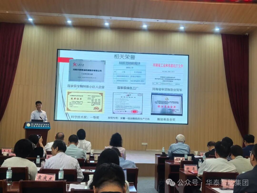 河南華泰智能裝備集團是集研發(fā)、制造、銷售于一體的糧油機械裝備企業(yè),產(chǎn)品覆蓋油脂工程、蛋白工程、飼料、淀粉工程等多個領(lǐng)域,業(yè)務(wù)遍及全球60余個國家與地區(qū)。集團始終以科技為核心,致力于推動糧油產(chǎn)業(yè)智能化、綠色化發(fā)展。作為國內(nèi)糧油裝備制造領(lǐng)域的創(chuàng)新標(biāo)桿,長期致力于米糠油技術(shù)的研發(fā)與應(yīng)用。會上,集團技術(shù)總監(jiān)陳杉詳細(xì)介紹了公司發(fā)展歷程、在米糠油加工工藝、裝備創(chuàng)新及科研成果轉(zhuǎn)化方面的突破性進展,分享了集團通過技術(shù)攻關(guān)實現(xiàn)的節(jié)能增效與產(chǎn)品品質(zhì)提升案例,發(fā)言贏得了現(xiàn)場專家與同仁的高度認(rèn)可與掌聲。